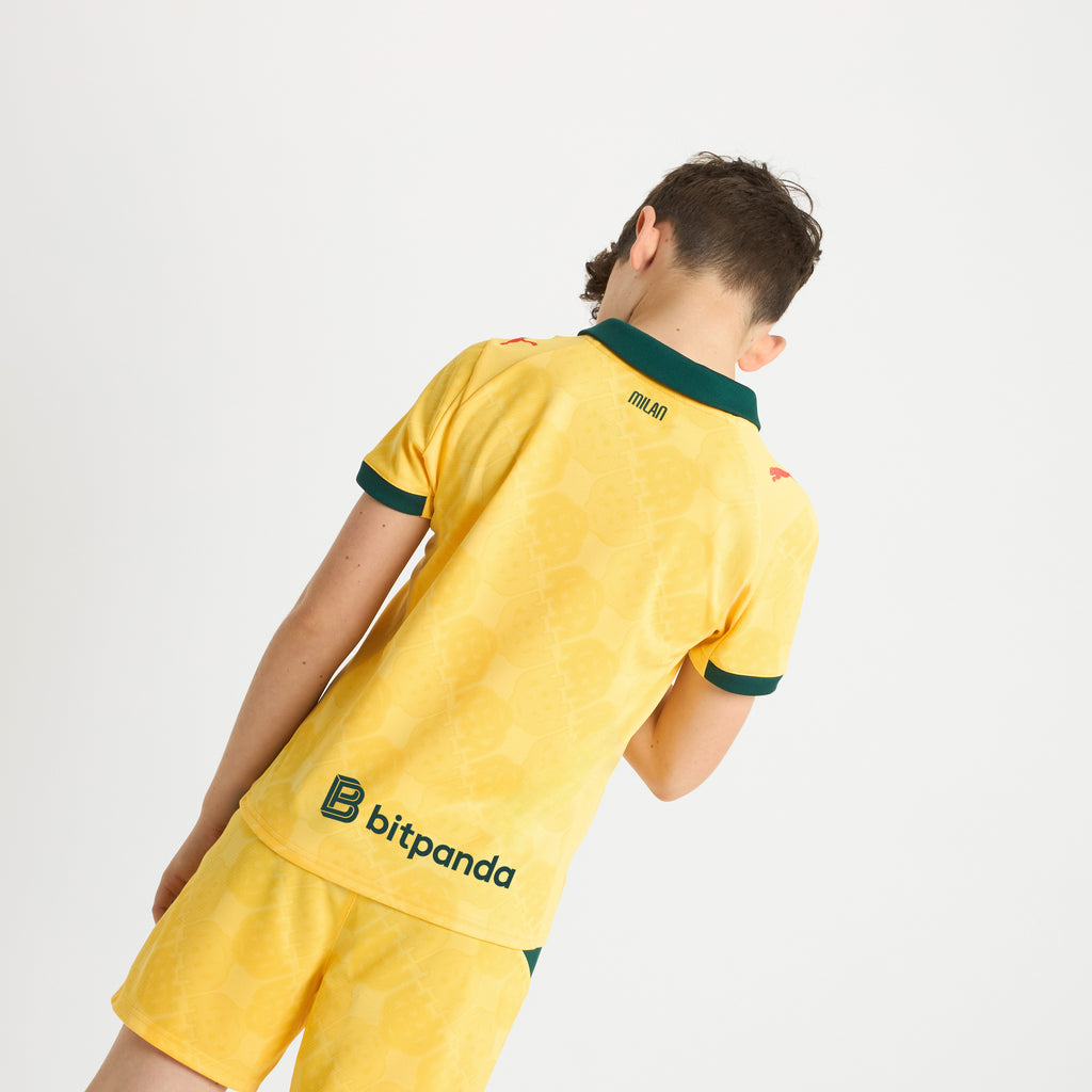 Ci sono kit che urlano per farsi notare. Questo, invece, parla con i dettagli. Il Third Kit 25/26 si ispira all’inconfondibile senso dello stile di Milano, rielaborando il monogramma ACM – un richiamo alla stagione 95/96 – come un audace dettaglio distintivo. In un vivace giallo solare con accenti di verde intenso, è un kit che fonde l’eredità calcistica con una visione orientata alla moda, nel modo in cui solo il Milan sa fare.