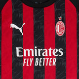 - Jersey with official AC Milan logo printed on the left chest, Principal Partner Emirates™ logo printed on the front, and Puma logo printed on the right chest